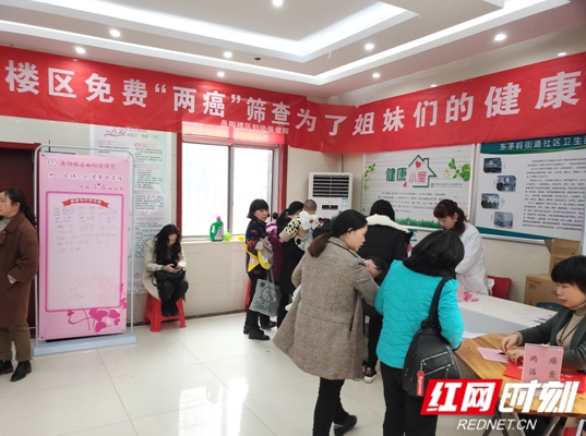 3月6日,岳阳市岳阳楼区妇幼保健院联合东茅岭社区卫生服务中心开展两癌筛查知识公益宣传和免费两癌筛查活动。
