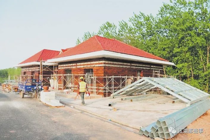 傍晚时分,记者来到长江大堤水利安保道路工程建设现场,只见大堤的水泥路已铺上了沥青,红瓦木屋的驿站基本落成,一旁焊花四溅,工人们正忙着焊接景观平台防护栏,整个工地紧张有序。