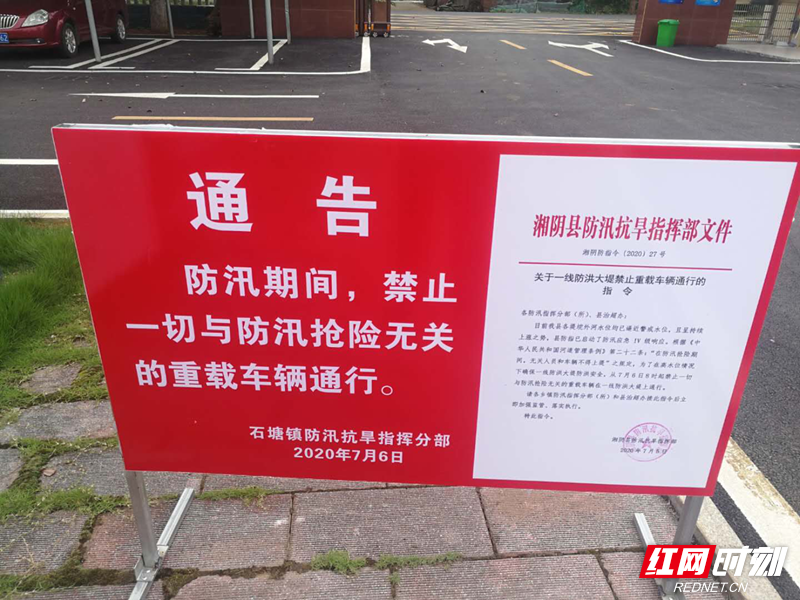 湘阴县石塘镇在重要路段张贴通告,禁止一切与防汛抢险无关的重载车辆通行。