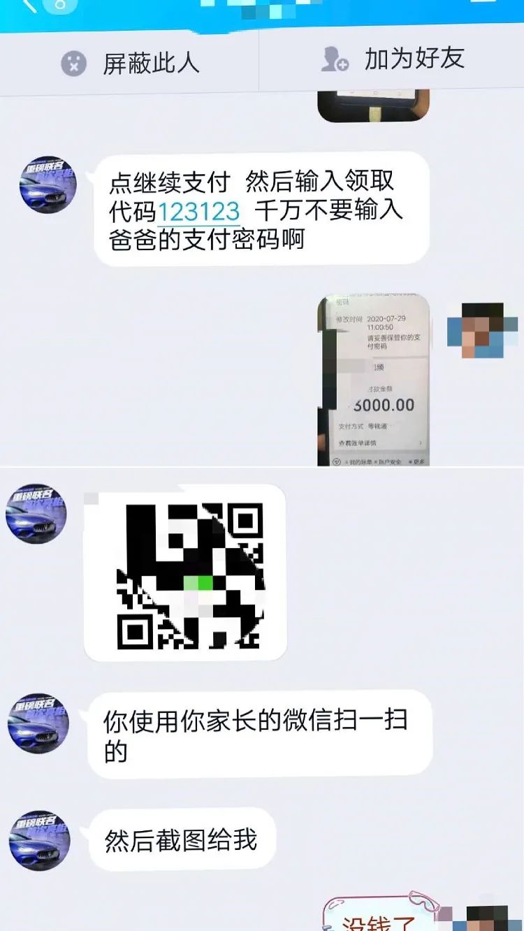 两个小时后,当群主第七次要小钟扫码时,小钟发现系统提醒支付失败,就告诉了妈妈。妈妈拿到手机一查,发现银行卡里的2万多元一分不剩,银行的流水记录显示,这不翼而飞的2万多元正是儿子一笔一笔转出去的。此时,一家人才发现受了骗,赶紧向三市派出所报了警。