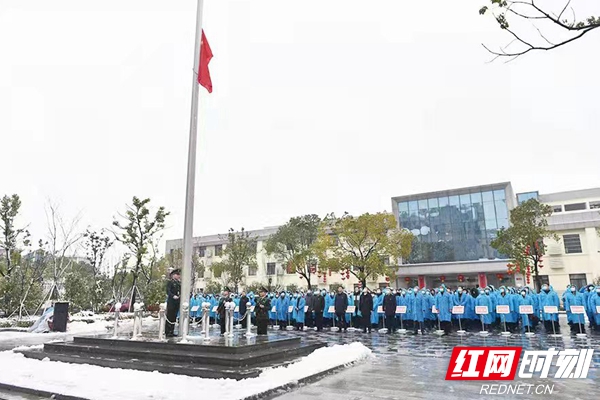 红网时刻岳阳2月7日讯(记者 胡峥)2月7日,农历正月初七,春节后上班第一天,岳阳市南湖新区举行新春升国旗仪式,进一步凝心凝力、鼓舞斗志,以崭新姿态开启奋进新征程。岳阳市委常委、宣传部部长、湖南岳阳楼·洞庭湖文化旅游度假区党工委第一书记刘启峰出席仪式并讲话,南湖新区党工委副书记、管委会主任潘宏军参加仪式。