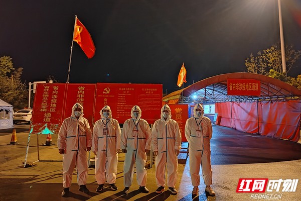 面对疫情大考,六塘乡深入开展以“党支部亮旗帜、组织生活亮规矩、党员示范亮身份、党建阵地亮形象”为主题的“四亮创建”活动,发挥基层党员防疫先锋模范作用,做到哪里任务艰险,就有党组织坚强有力的工作,疫情在哪里,党员干部的身影就出现在哪里,让鲜红的党旗在战“疫”第一线高高飘扬。该乡36名党员干部主动请缨出征到工作任务最繁重的高速路口防疫一线,开展来湘人员健康监测工作,把一面面党旗插在群众最需要的地方。“大家每天分三班,24小时轮岗值守,要对过往车辆、行人进行排查,确认符合条件的再予以通行,并积极宣讲防控政策。”临时党支部书记何程炜说,平均一岗,大家要在室外站8小时以上,因为近期室外温度低,大家依靠热贴、发热鞋垫、“叠穿衣”等“全副武装”。