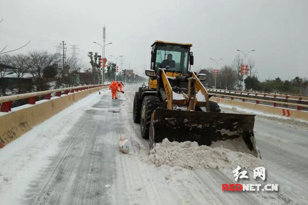 在城陵矶通关服务中心、永济大道、凌泊湖小区进出道路随处可见“铲雪除冰行动队”的身影;在城陵矶海关路一辆辆机械铲雪车正有序进行铲雪除冰,沿路重点进出通道和人行道还有专人进行人工铲雪;在长江大道及云港路沿线机械车正进行撒盐处理,在华能桥、松杨湖大桥、白杨湖大桥等易结冰打滑路段亮起了警示牌,提醒过往车辆注意行车安全。