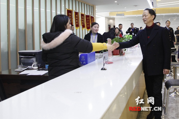在政务中心,王文华对大家2017年的工作给予高度肯定。他说,作为新港区窗口单位,过去一年,无论是工作作风,职业素养,还是办事效率方面都得到提升,群众满意度较高,他鼓励大家再接再厉,扎实工作,以崭新的姿态,饱满的热情迅速投入新一年的工作,努力做到形象更好,效益更高,服务更优。