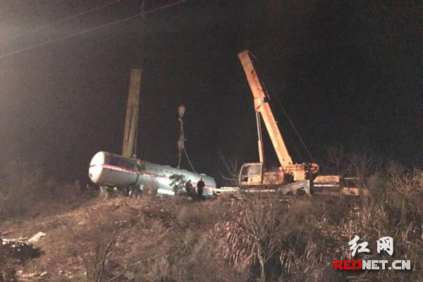 16时20分许,云溪区政府、区应急办、安监局、交通局,环保和巴陵石化公司等部门相关负责人相继赶往现场,由巴陵公司和安监、消防、吊装公司组成的专家组敲定救援方案,至25日21时许,槽罐车被成功吊出拖离现场。22时30分,经过近35个小时的连续艰苦奋战,成功完成救援工作,救援人员全部撤离现场,隋岳高速交通恢复畅通。