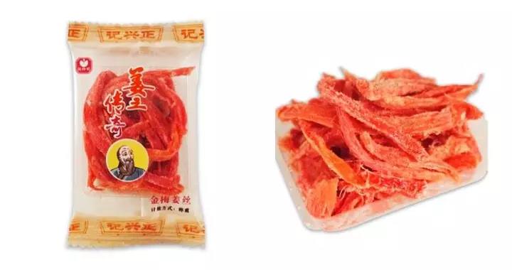 浏阳市淮川鸿祺综合商行销售的湖南正兴记食品有限公司生产的金梅姜丝检出胭脂红项目不符合标准要求。初检验机构为湖南省食品质量监督检验研究院,复检机构为中国检验认证集团湖南有限公司。