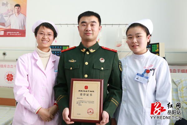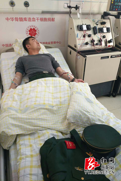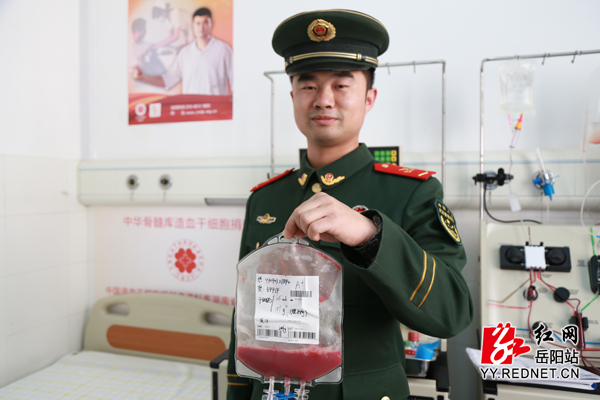 红网时刻12月20日讯(通讯员 张西磊 岳阳分站记者 冯刚)今天上午,武警湖南总队岳阳市支队“90后”战士蒋明光在长沙湘雅附三医院顺利完成造血干细胞采集,成为全国第6969例造血干细胞捐献者,同时也是2017年我省首例成功捐献造血干细胞的现役军人。