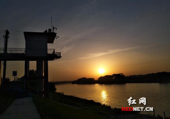 夕阳下,与晚霞为伴的水文站矗立在汨罗江畔,似融入到水天之中,随着戊戌狗年零点钟声的敲响,她将继续见证着新时代水文的蓬勃发展。