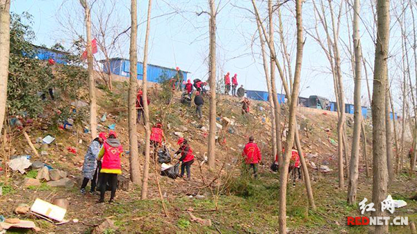 红网时刻岳阳2月27日讯(通讯员 张萍)2月26日,华容县心连心义工联志愿者与华容县城兴社区居民共同组成一支30多人的志愿者小分队,义务清理华容河大堤潘华大桥堤段上的垃圾。