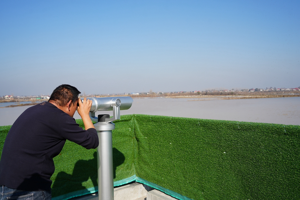 工作人员正通过望远镜监测候鸟种群状态。周洋/摄