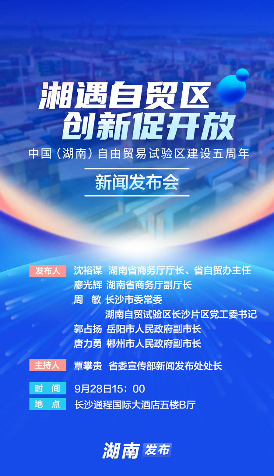 预告海报|湘遇自贸区 创新促开放 ——中国(湖南)自由贸易试验区建设五周年新闻发布会