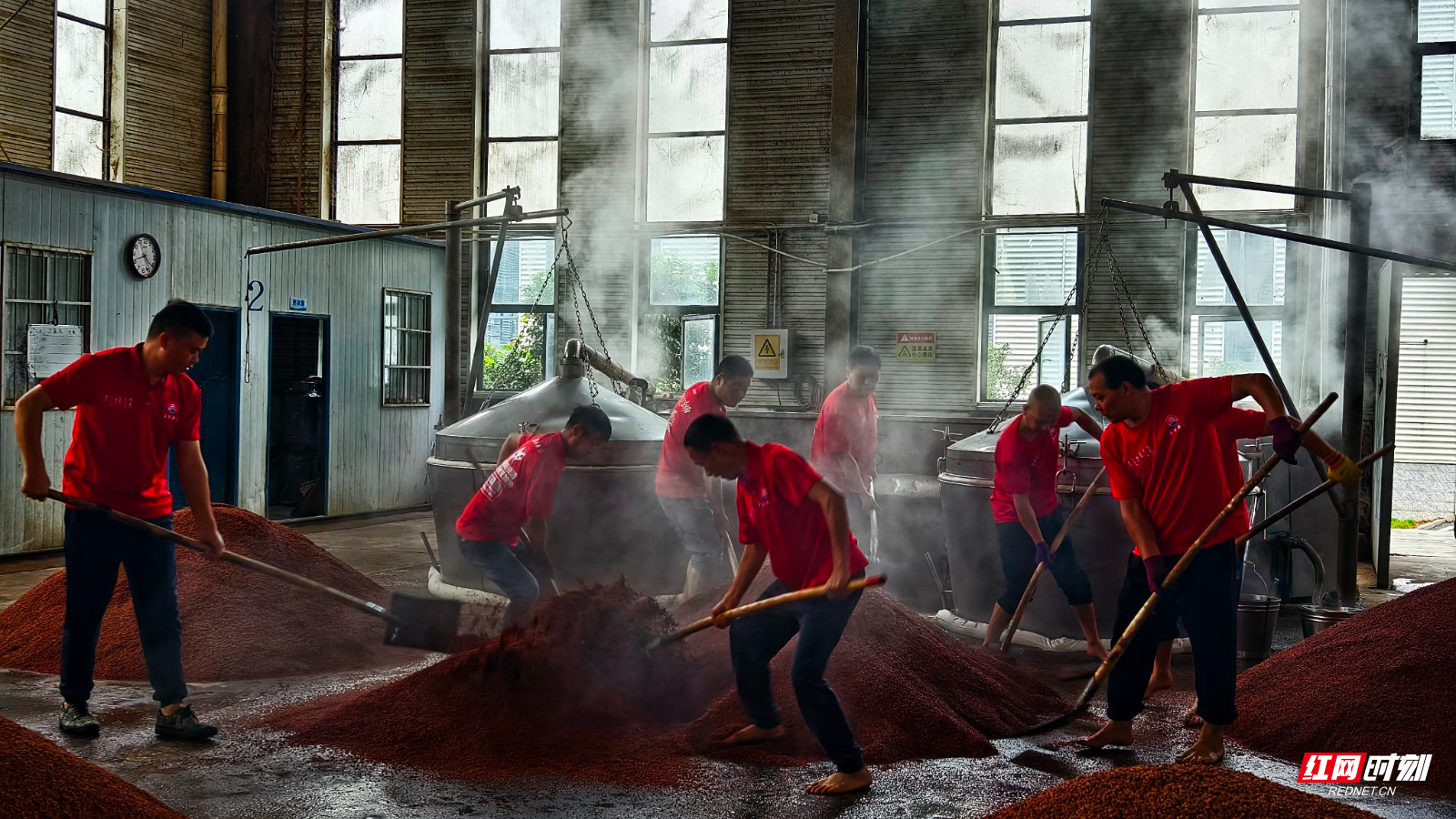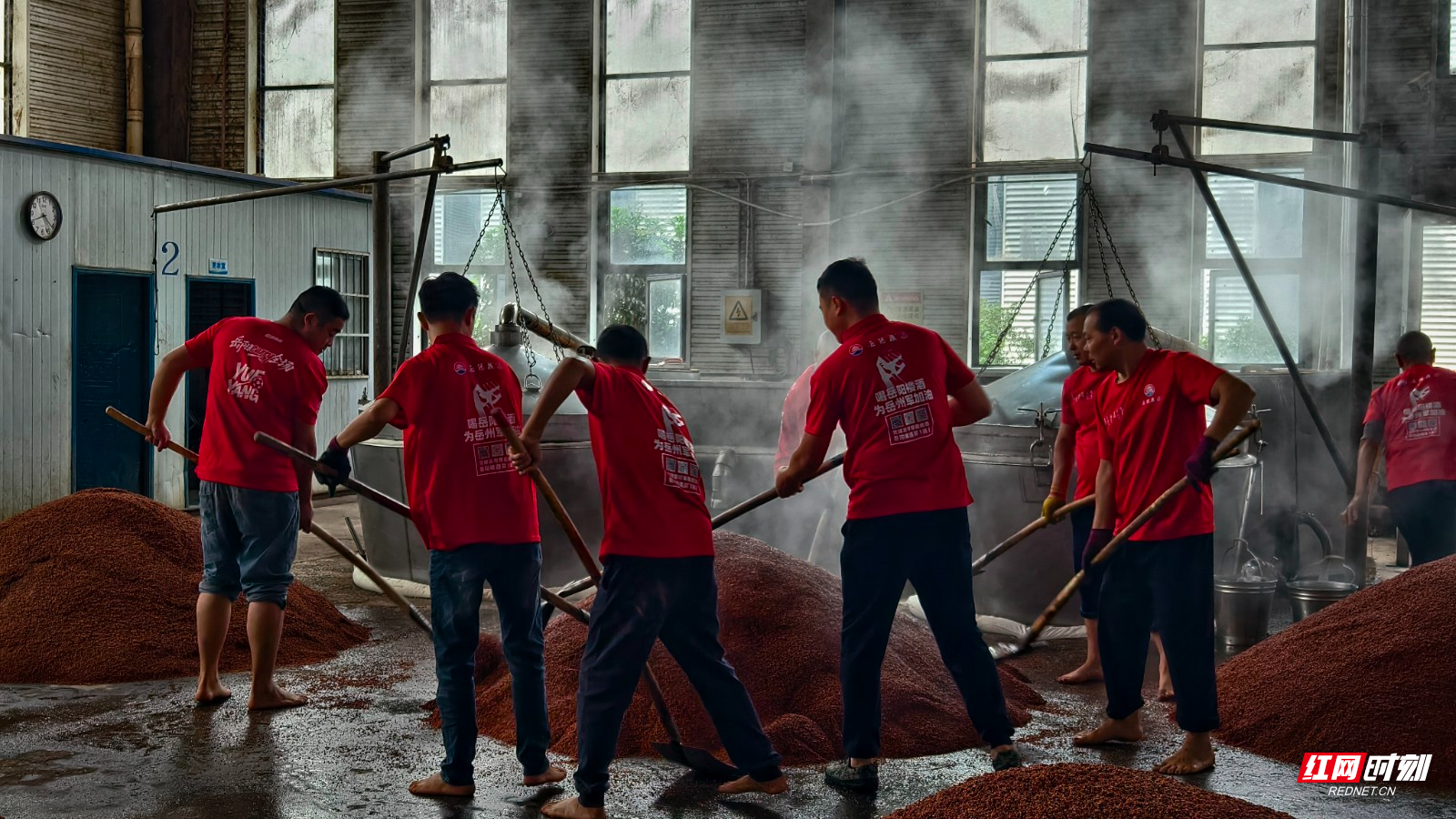 红网时刻新闻10月20日岳阳讯(记者 叶芬 实习生 徐丽群 通讯员 陈海生)10月19日,岳阳楼酒酱酒车间内一派火热景象。工人们有条不紊地开展“下沙”作业,标志着岳阳楼酒业集团2026年度“下沙”生产正式启动。