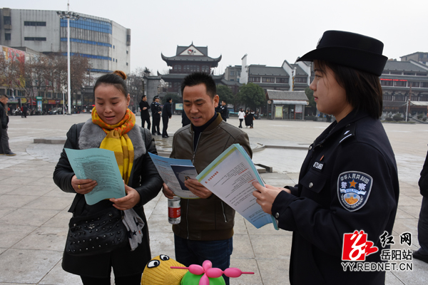 红网时刻12月27日讯(岳阳分站记者 冯刚 通讯员 张雷)今天下午,湖南省岳阳市反恐办启动本地《反恐怖主义法》宣传周活动,13个县区(含2个代管区)反恐办分别在同一时间不同地点同步启动分场宣传活动。岳阳市公安局党委委员、副局长、反恐办主任廖亚文在巴陵广场瞻岳门前主持启动仪式。
